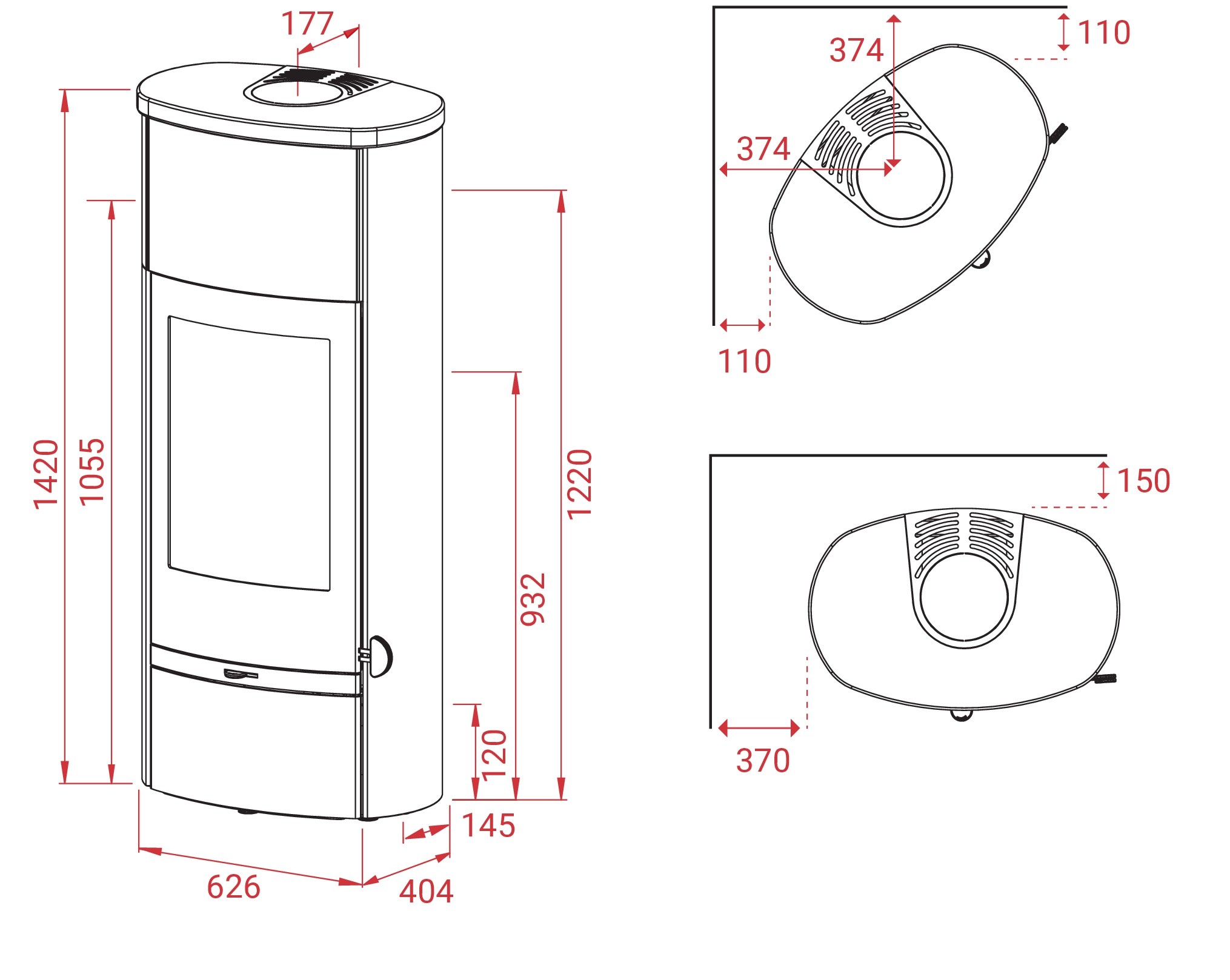 - Rauchrohranschluss: hinten/oben Ø 150mm