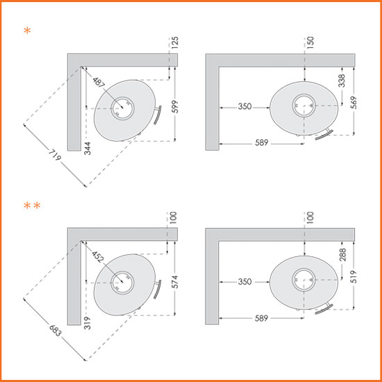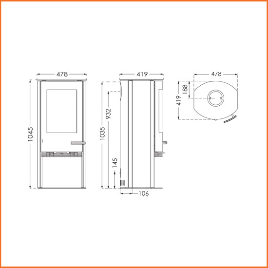 - Abstand zu brennbarer Seitenwand/Hinterwand: 350/150mm