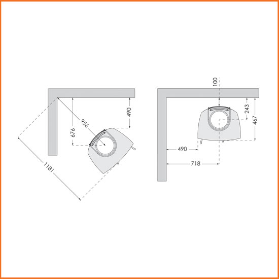 - Abstand zu brennbarer Seitenwand/Hinterwand: 470/100mm