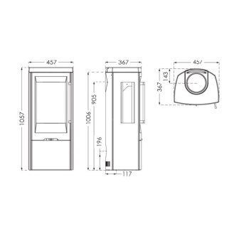 - Rauchrohranschluss Ø 150mm : Mitte Rohr hinten 905mm /oben ab 1057mm