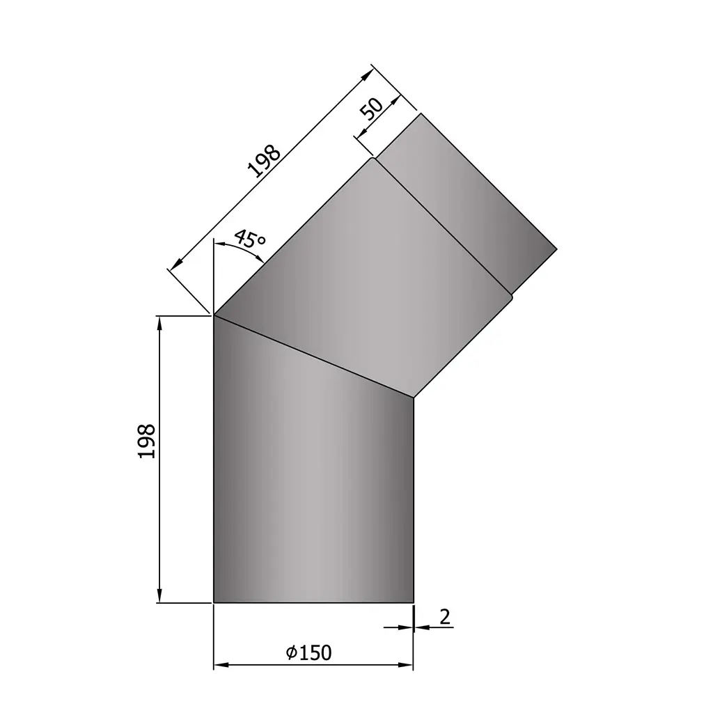 Rauchrohrbogen, Ø120/130/150mm, 45°