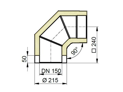 Bogen 2x45° isoliert, Ø innen 150mm ohne Tür
