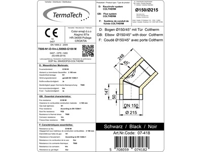 Produktinformationen "Bogen 45° isoliert, Ø innen 150mm mit Reinigungstür"