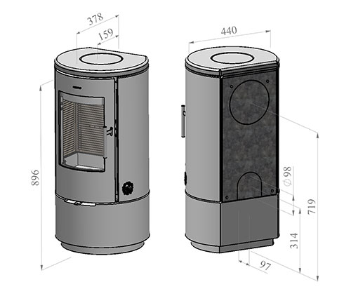 - Rauchrohranschluss: hinten/oben Ø 150mm