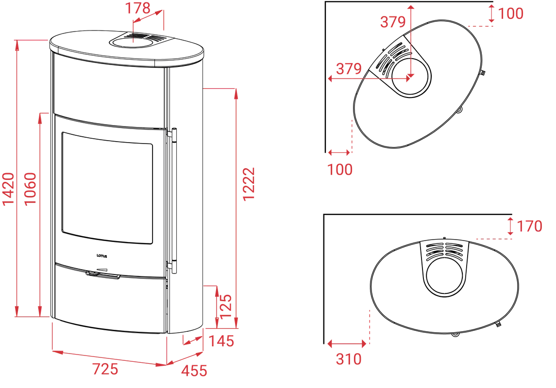 - Rauchrohranschluss: hinten/oben Ø 150mm