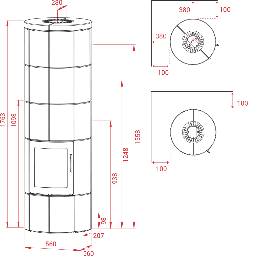 - Abstand zu brennbarer Seitenwand/Hinterwand: 100/100mm