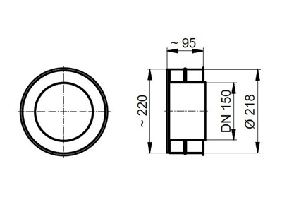 Produktinformationen "Mauermuffe doppelt L 95mm für Rauchrohr isoliert Ø innen 150 mm"