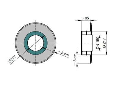 Produktinformationen "Rosette 80mm Rand m. Muffe für isolierte Rohre Ø innen 150mm"